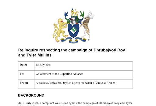 The Lord-President accused the Roy-Mullins campaign of harassment and bribery, which then the Superior Court of the Cupertino Alliance investigated, and they found no wrongdoing in the Roy-Mullins campaign, which then prompted an investigation into the connection between the Lord-President and Daniel Hamilton.