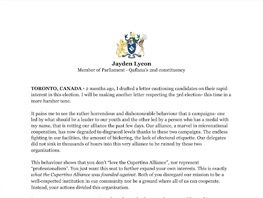 Many arguments then ensued between both campaigns over the weekend. AJ Lycon was disappointed and issued a stern letter regarding the elections (which can be read here).